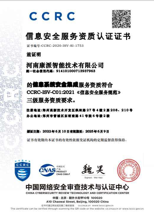 CCRC認證證書
